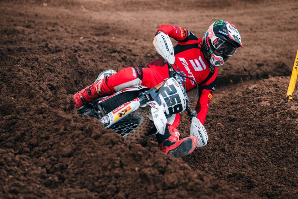 Warm-up on Sunday morning saw Andrea Bonacorsi in an encouraging third place, and the Fantic Factory Racing MXGP trio was motivated and fully focused on the crucial start of race 1. Both Coldenhoff and Bonacorsi were fast out of the gate aboard their Fantic XXF 450 machines, but when another rider fell in turn 1, they lost valuable time and dropped out of the top 10. They fought hard until the checkered flag but couldn’t quite find the lines to pass the group ahead. Eventually, “The Hoff” finished 12th, with “Bona” close behind in 13th. Bogers lost further ground after a fall and had to settle for 20th.