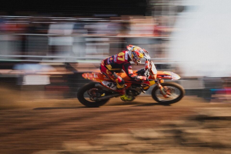 At the time, he didn’t realize this and still wanted to represent his country in the second moto. Despite a poor start to the race — during which he went down in the opening lap — he finished twenty-first, riding the entire race with a broken arm.