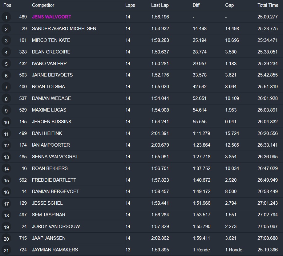 The BTS Racing Team rider won with a comfortable lead ahead of the surprising Sander Agard-Michelsen, and Mirco ten Kate took third place.