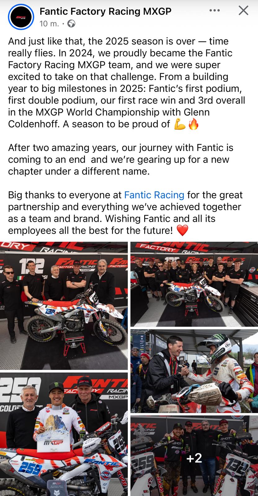 After two successful seasons in the MXGP World Championship, highlighted by Glenn Coldenhoff’s third-place finish in this year’s standings, it has been announced that Louis Vosters’ team will not continue its collaboration with Fantic.