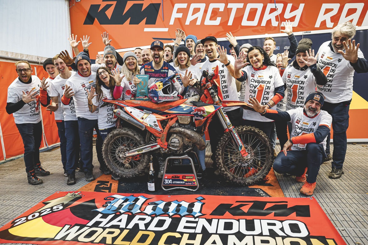Red Bull KTM Factory Racing’s Manuel Lettenbichler has secured the 2025 FIM Hard Enduro World Championship title after delivering a sensational performance to win his home round, GetzenRodeo, in Germany. The victory marks Lettenbichler’s fifth world title, earned in front of a packed and passionate crowd. Riding his KTM 300 EXC to perfection, the German star proved unstoppable, sealing the title with one round to spare.