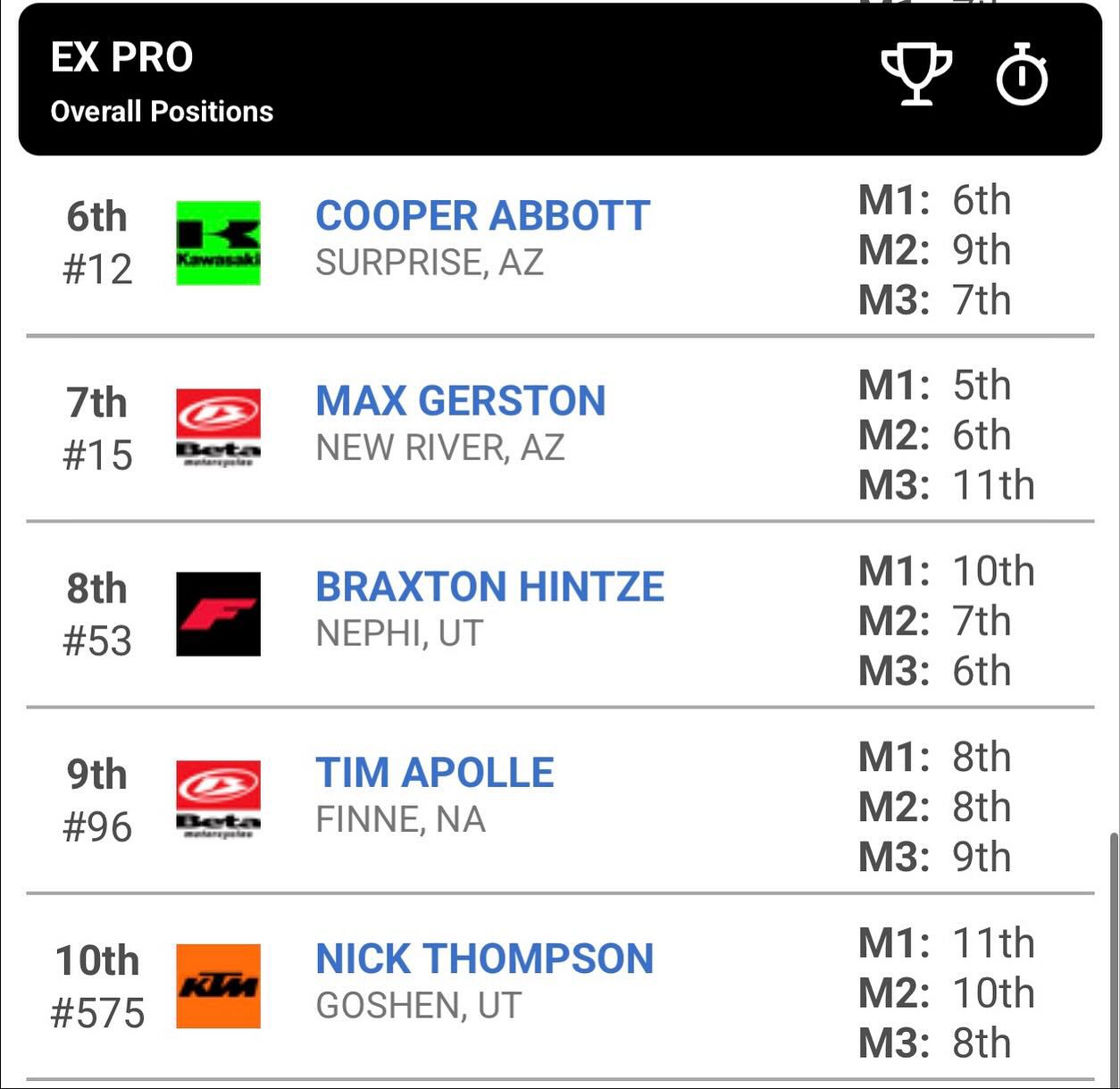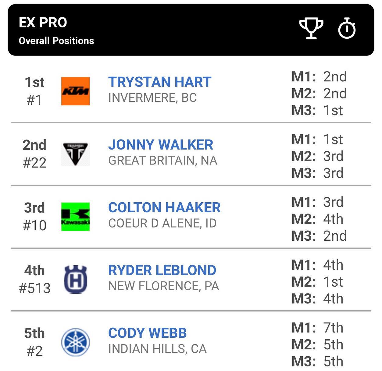 Hart took the top spot ahead of Jonny Walker and Colton Haaker, while Ryder Leblond and Cody Webb completed the top five.