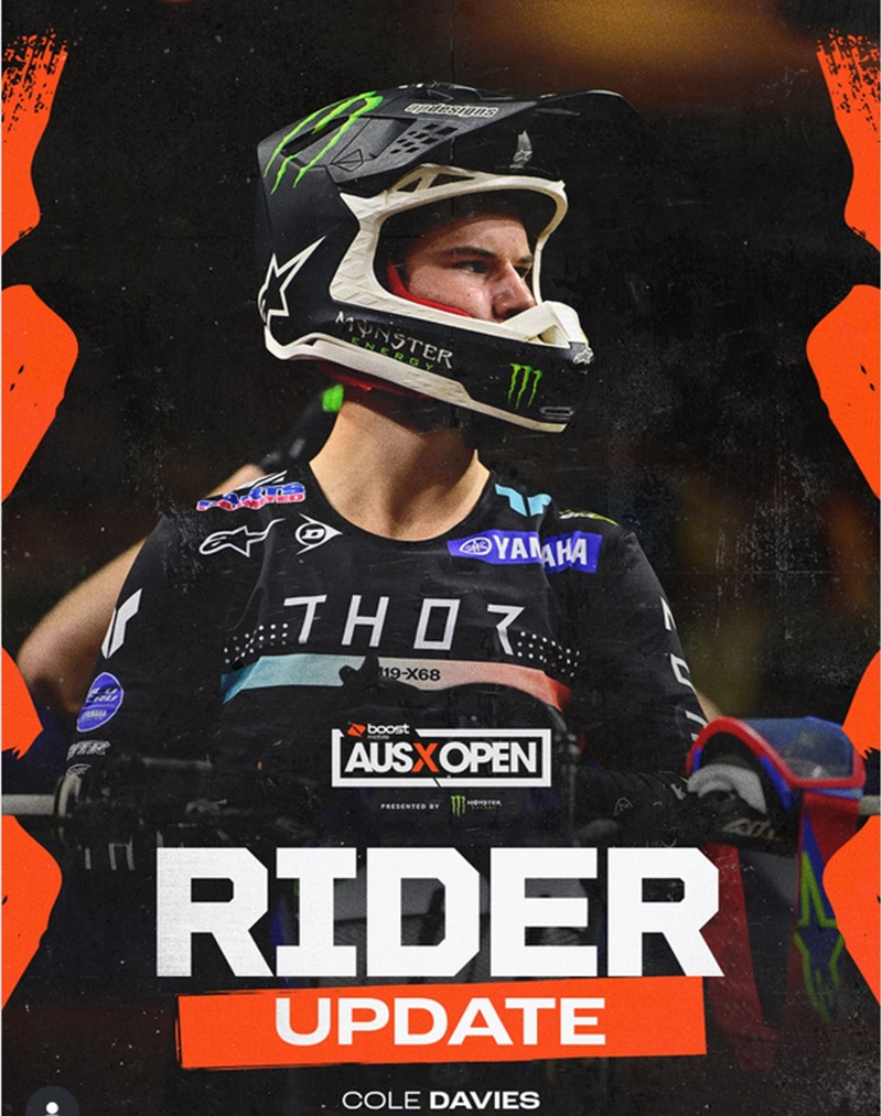 Cole Davies has been ruled out of the 2025 BOOST Mobile AUSX Open due to injury