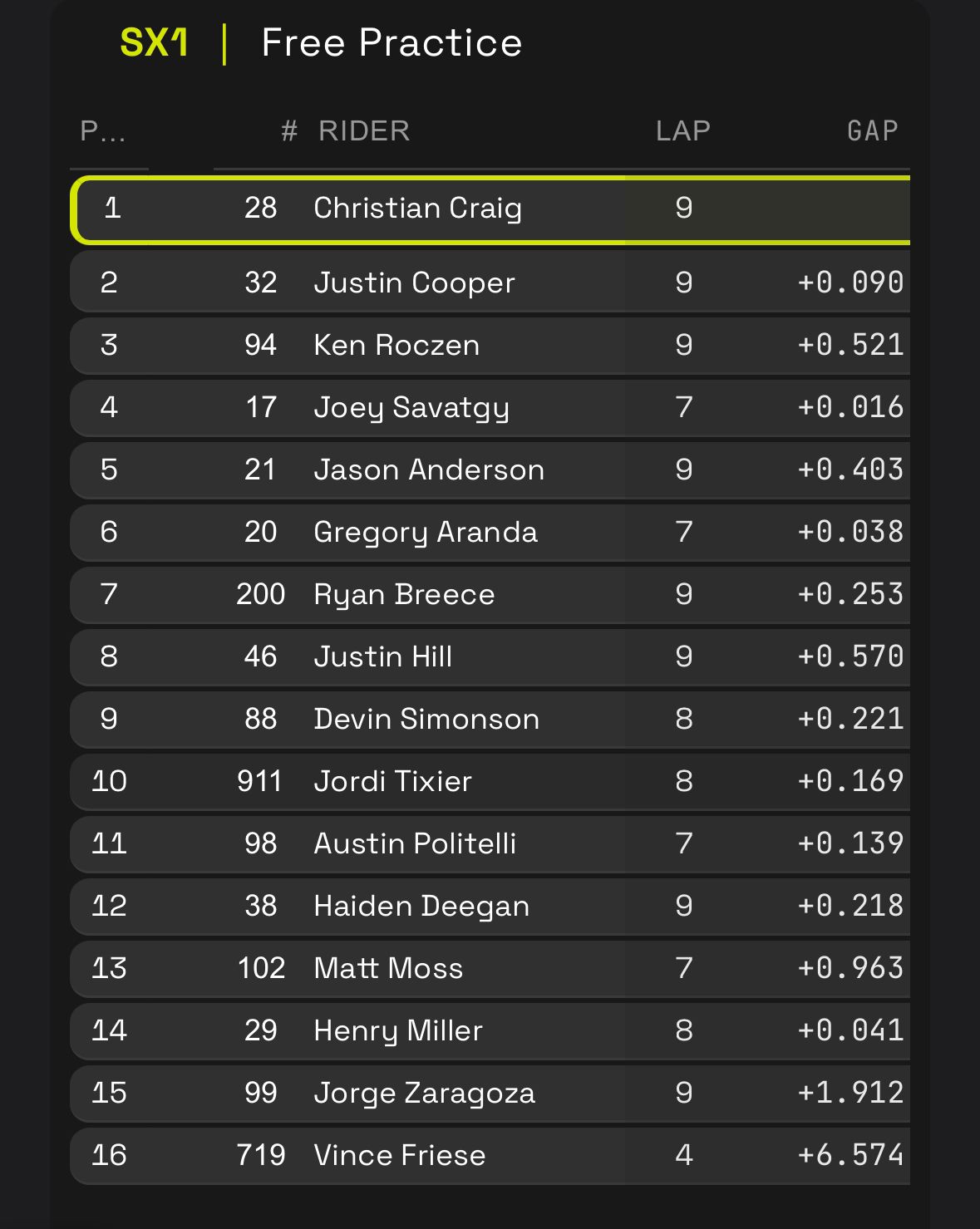 Christian Craig set the fastest time during free practice at the World Supercross in Argentina. Justin Cooper and Ken Roczen finished second and third in training. Haiden Deegan ended up with the twelfth fastest time!