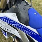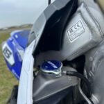 First off is the GYTR air box cover. Although it doesn’t look like a big deal, believe you me, it does wonders for the bike. Not only is it more secure than the standard one, as it is held down with an 8mm bolt at the top. It also has a greater volume than the stock cover. More volume around the filter means your bike can suck in more air more easily, rather than almost choking the engine. The air box cover also has two extended bits that cover the frame where a lot of key electrical joins are, keeping them safer in crashes, from roost and even when we’re washing it.