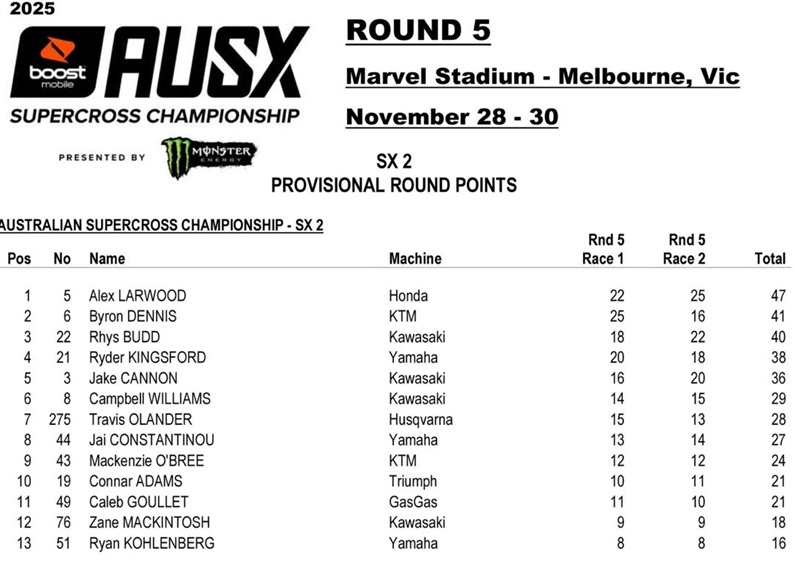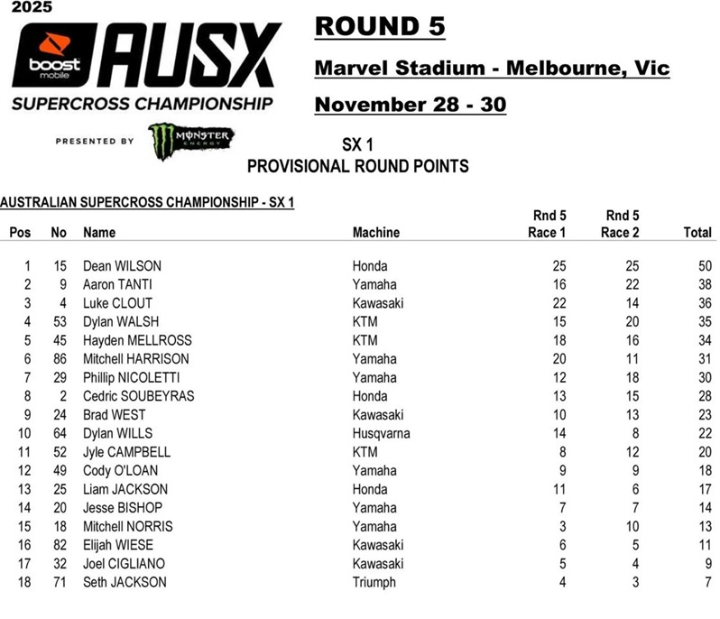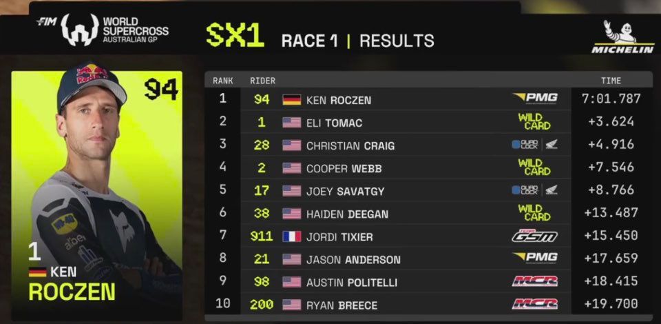 Ken Roczen has won the third round of the World Supercross Championship in Australia. It was an eventful evening with plenty of action, but Roczen was the most consistent with finishes of 1-4-3.