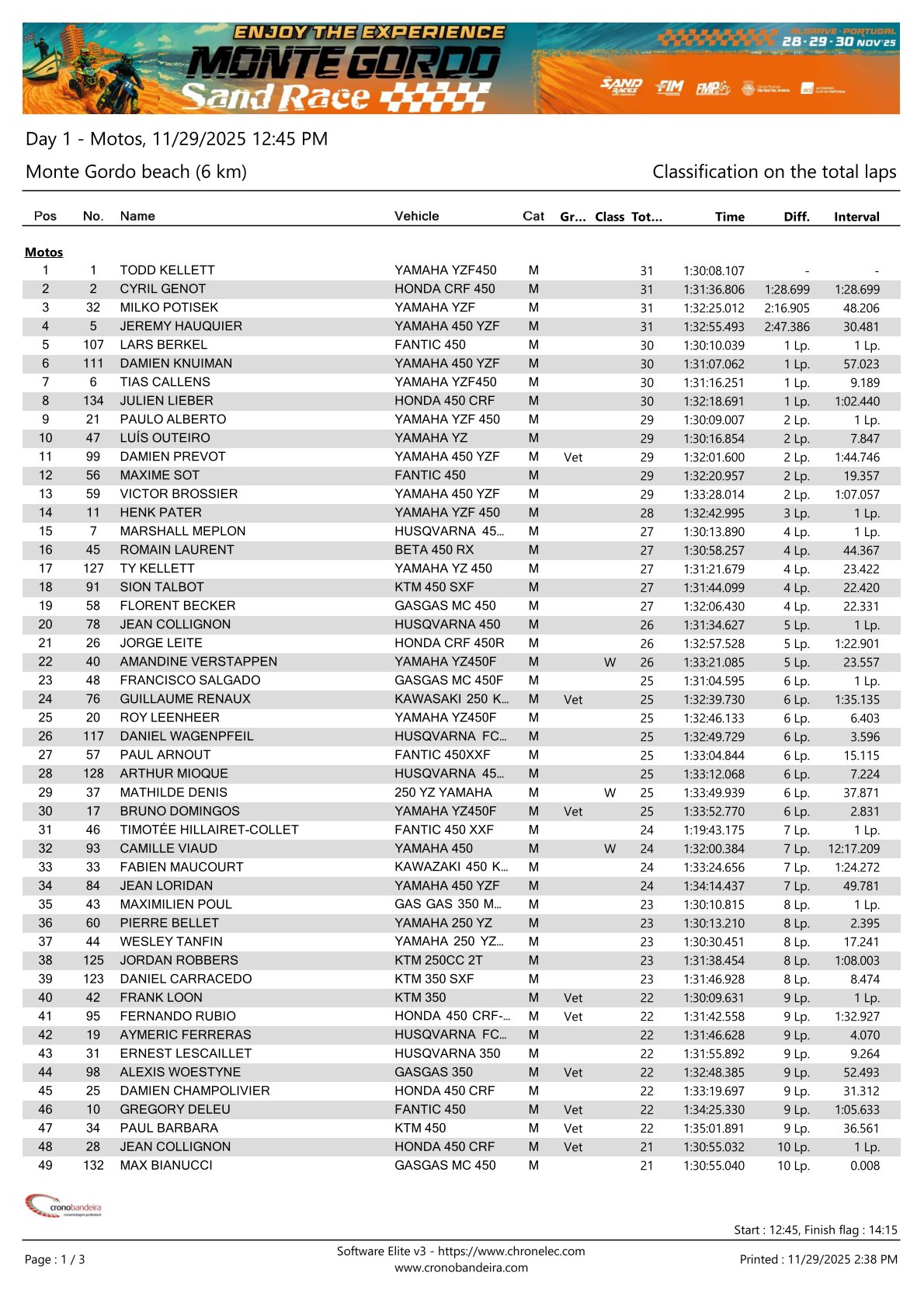 Todd Kellett has won the first moto of the FIM Sandrace World Championship in Monte Gordo, Portugal. Kellett managed to take victory in the one-and-a-half-hour race ahead of Cyril Genot and Milko Potisek.