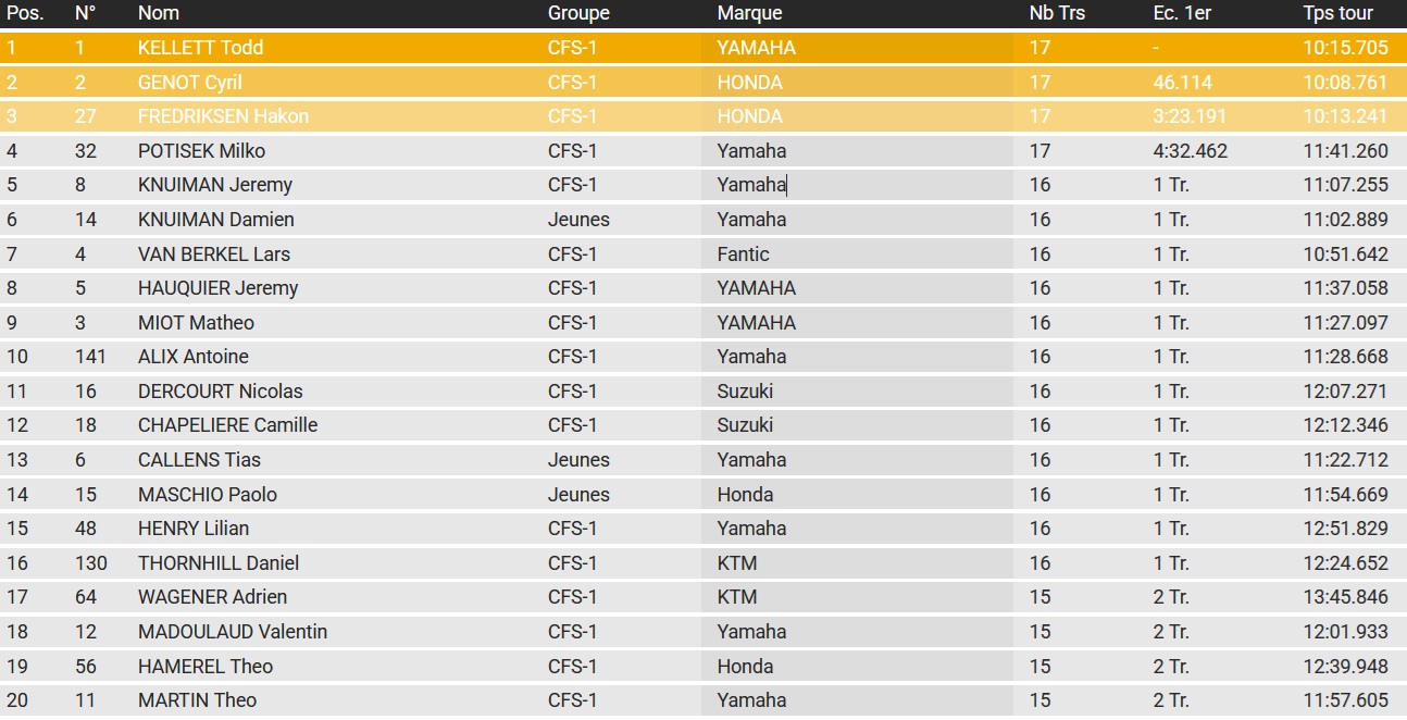 Todd Kellett managed to win the French sand championship in Saint Leger de Balson. At the finish, he held a 46-second lead over Cyril Genot, and Hakon Fredriksen took third place.