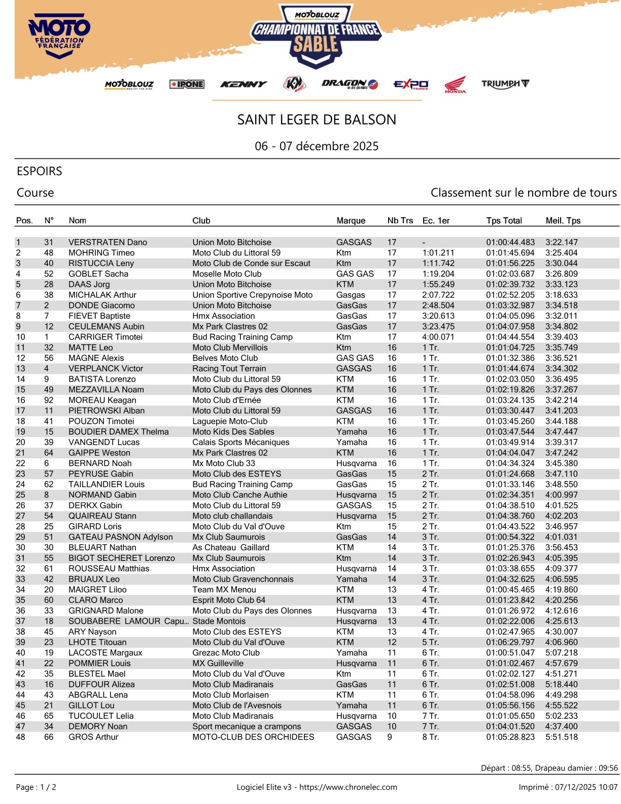 Dano Verstraten has won the French 85cc sand championship round in Saint Leger de Balson. With this victory, Verstraten extends his lead in the championship standings.