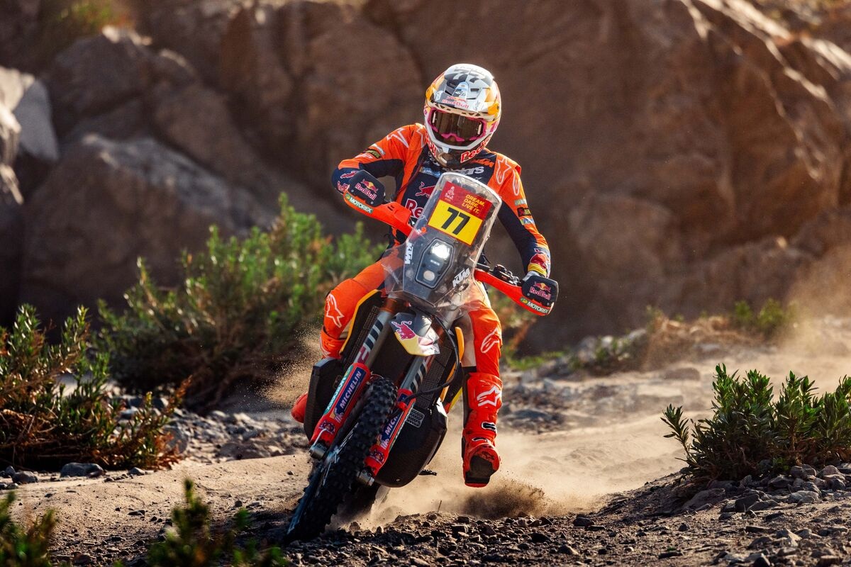 Red Bull KTM Factory Racing’s Daniel Sanders has won stage two of the 2026 Dakar Rally. Leading home second-placed Edgar Canet on the route from Yanbu to AlUla, Sanders secured his first stage win of the year and his 10th at the Dakar. After a challenging day in the desert, Luciano Benavides safely completed the stage in a solid ninth place.