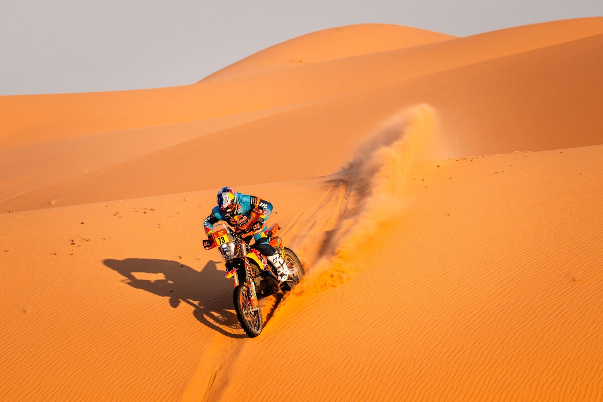 As the second rider into the stage, Sanders was focused on catching teammate Benavides ahead. However, with both KTM riders falling foul of a difficult note in the roadbook around kilometer 34, they immediately lost time to the chasing pack. Riding in a group from there to the finish, Daniel was able to adjust his pace to the conditions and avoid any damage to his KTM 450 RALLY. Completing the special in second place and earning close to five minutes in bonus time, Sanders now leads the rally by six minutes and 24 seconds.