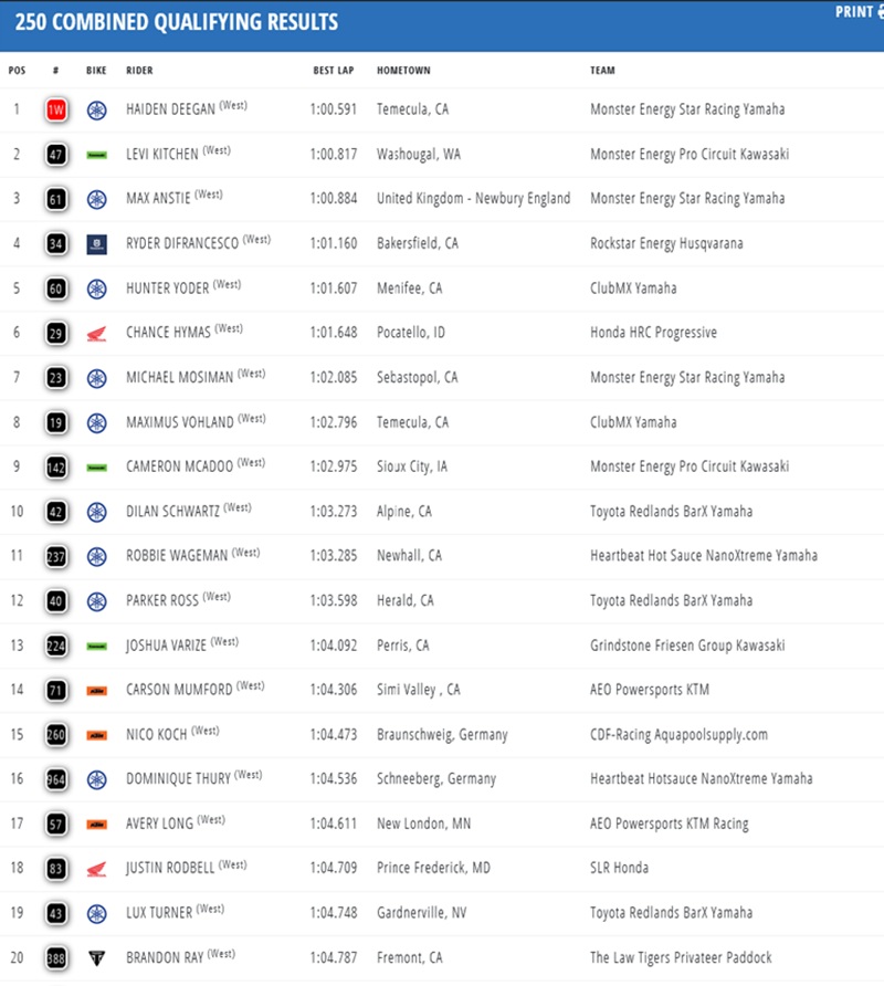 Sexton and Deegan Secure Pole Position at Anaheim 2 January 24, 2026January 24, 2026 Chase Sexton and Haiden Deegan have claimed pole position for the third round of the AMA Supercross Championship in Anaheim. Check out the qualifying results below. 450: Photo credits – Align Media