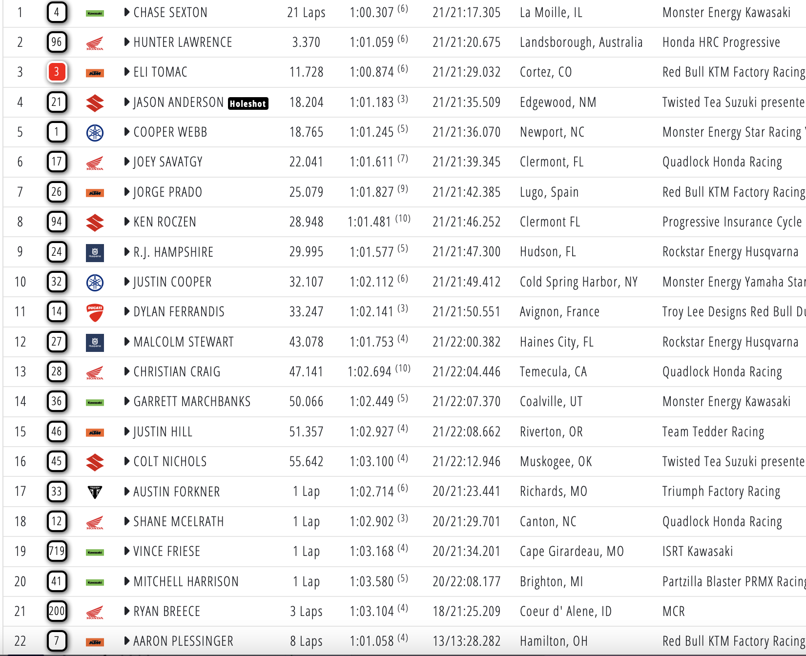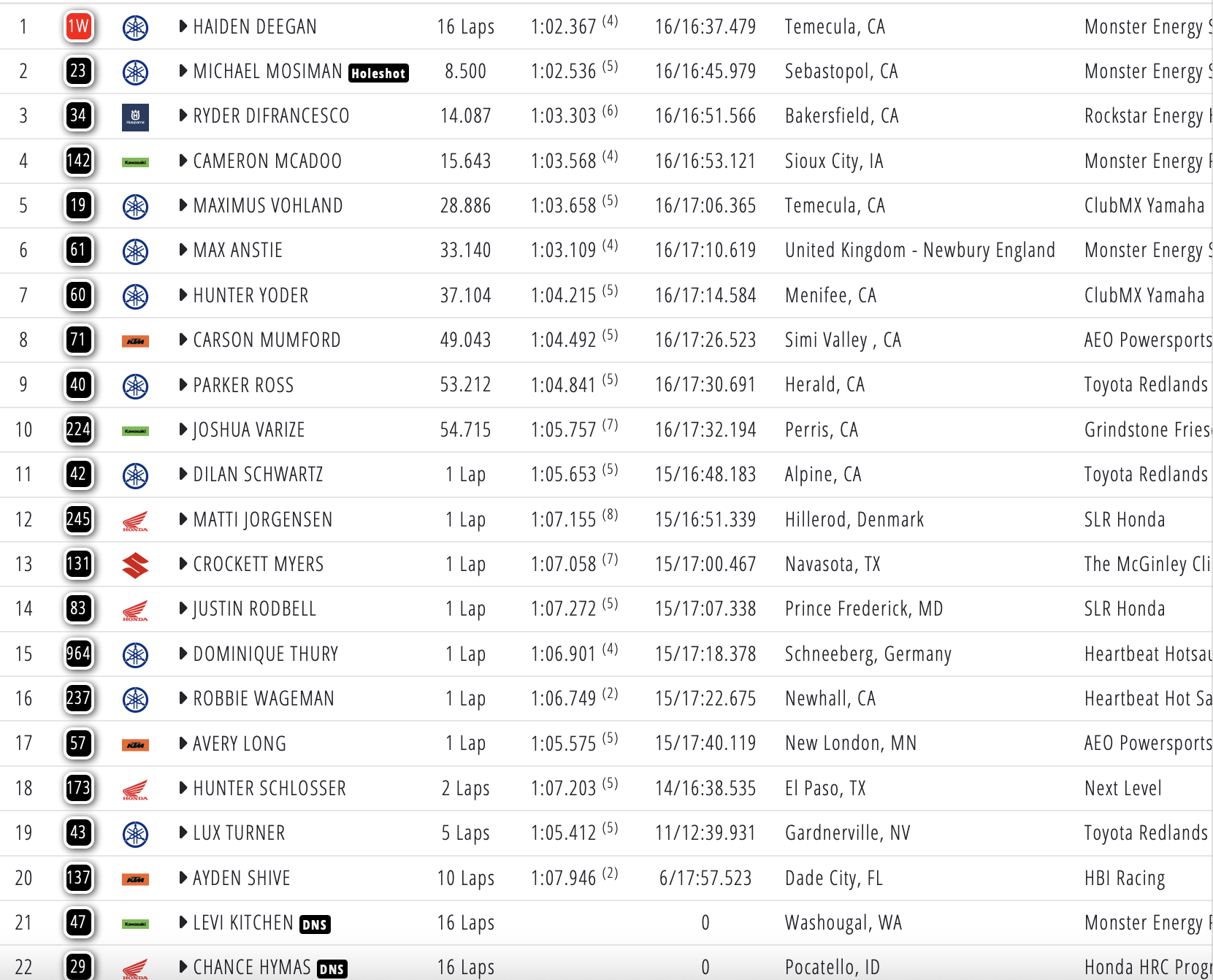 Sexton and Deegan winners at Anaheim 2 January 25, 2026January 25, 2026 Chase Sexton and Haiden Deegan have won the third round of the AMA Supercross Series in Anaheim. Watch full results and the new championship standings below: 450: 250: Photo credits – Align Media