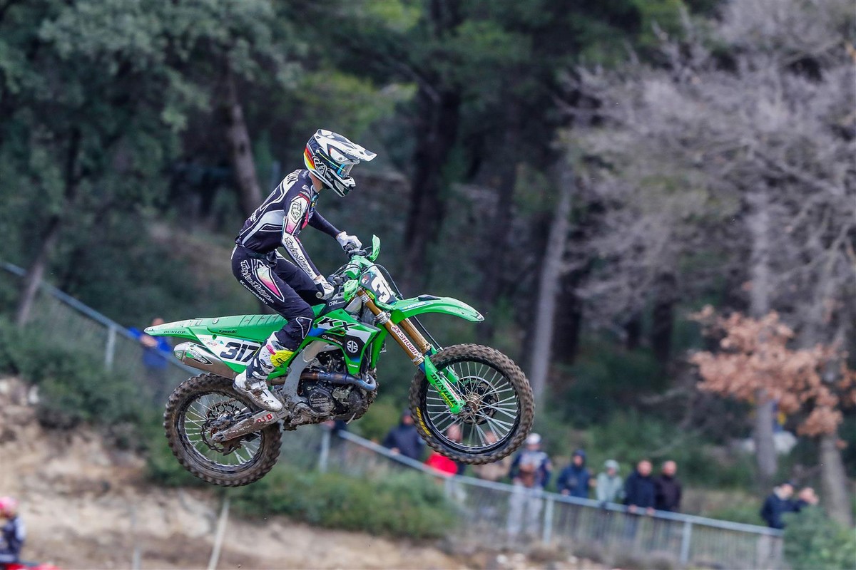 The Kawasaki Racing Team MXGP of Romain Febvre, Pauls Jonass and Mathis Valin each raced to the podium in their first shake-down race of the 2026 season at Pernes-les-Fontaines in southern France.