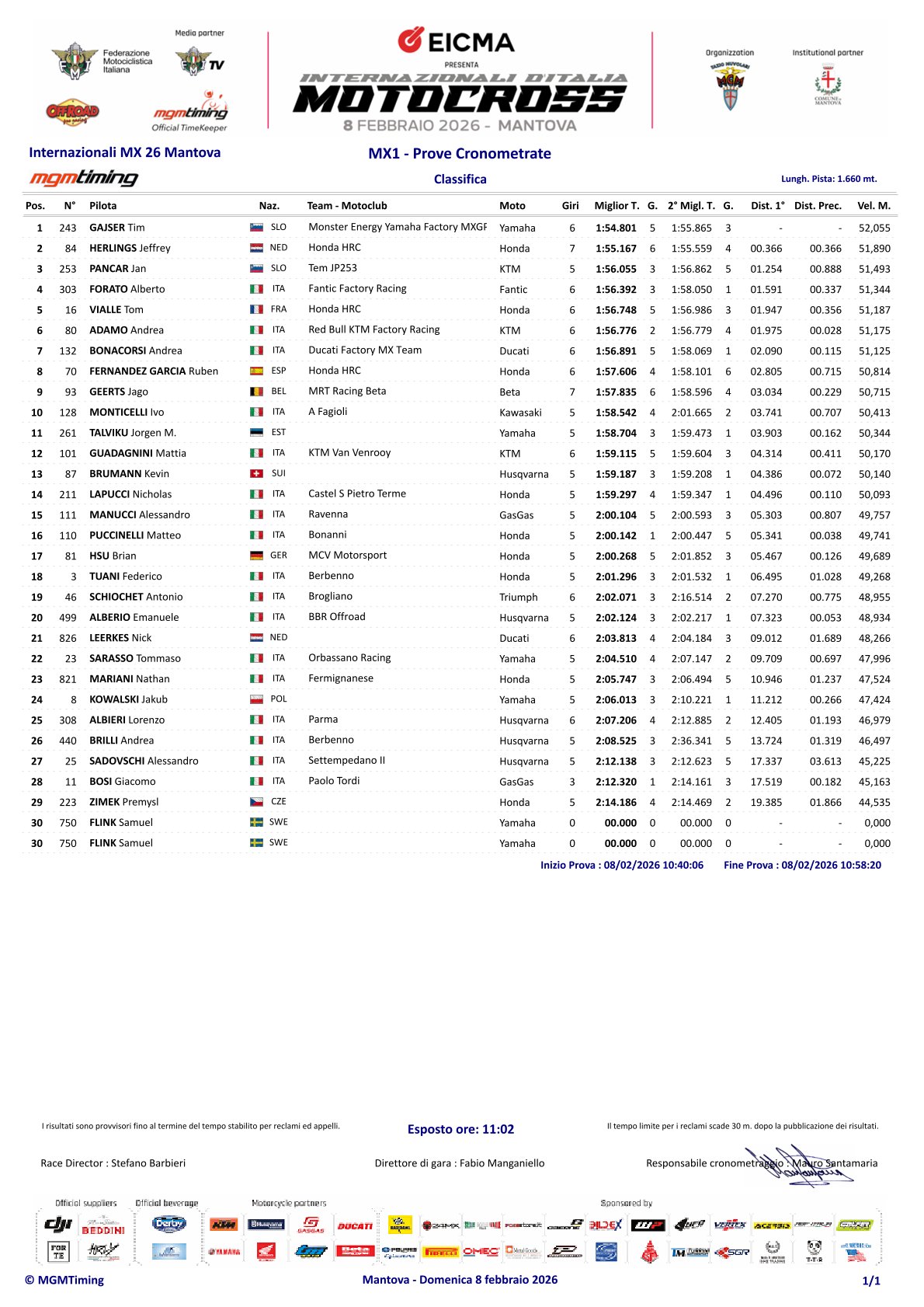 In the 500 class, Tim Gajser secured pole position ahead of Jeffrey Herlings and Jan Pancar. Alberto Forato set the fourth-fastest time, while Tom Vialle finished fifth in practice.