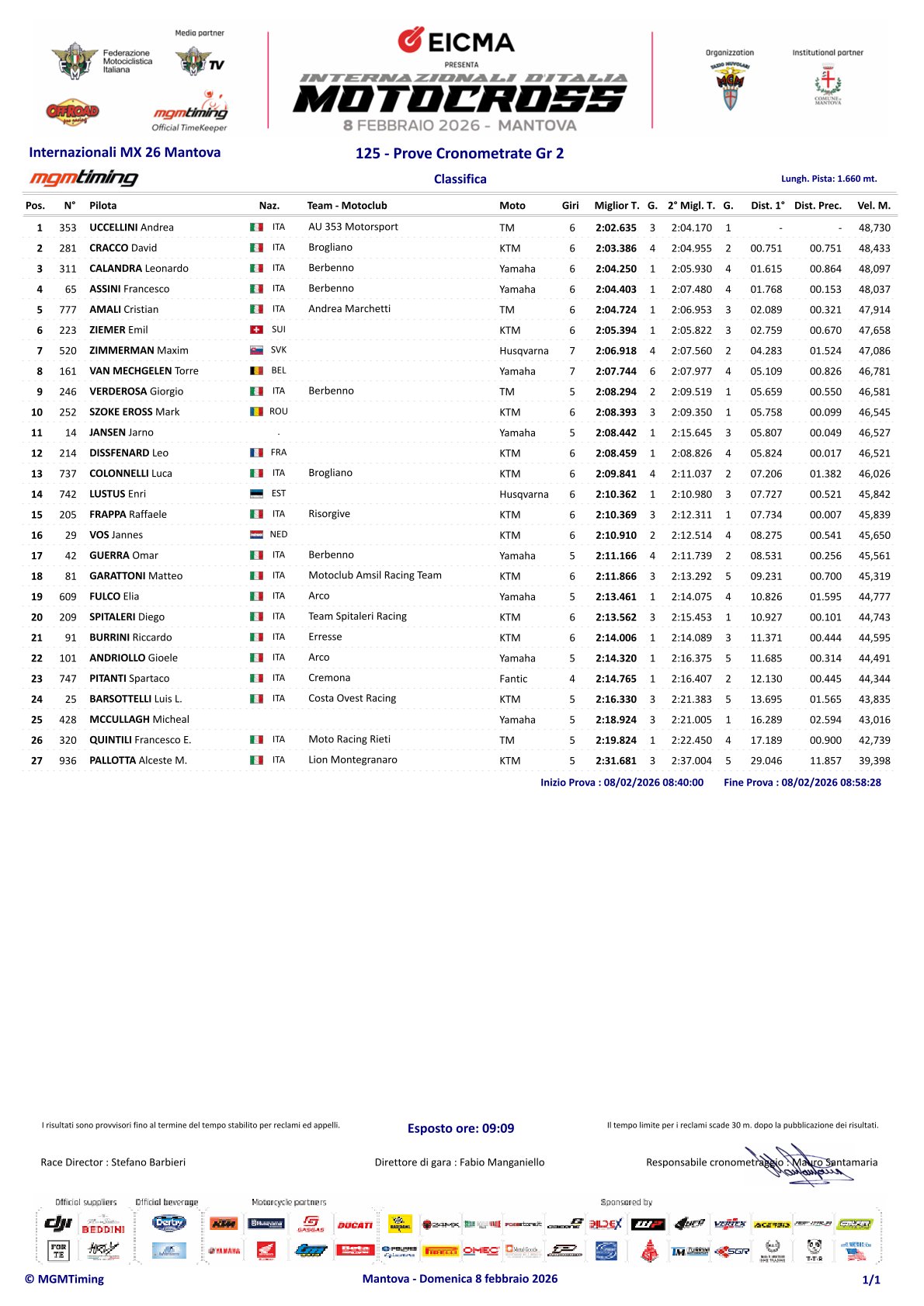 The timed practice sessions for the second round of the Italian Championship in Mantova have been completed.