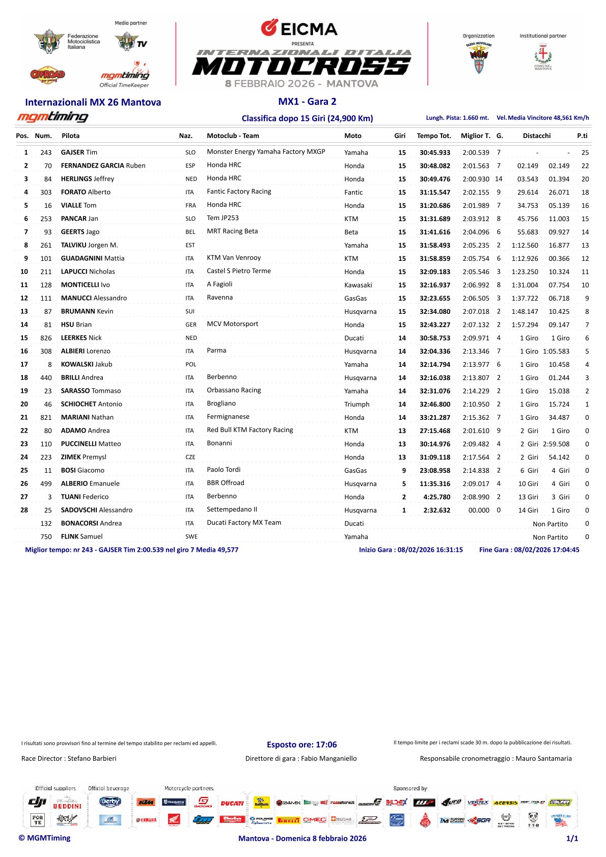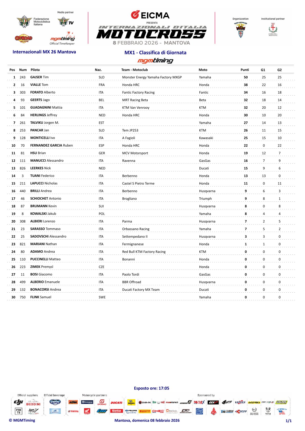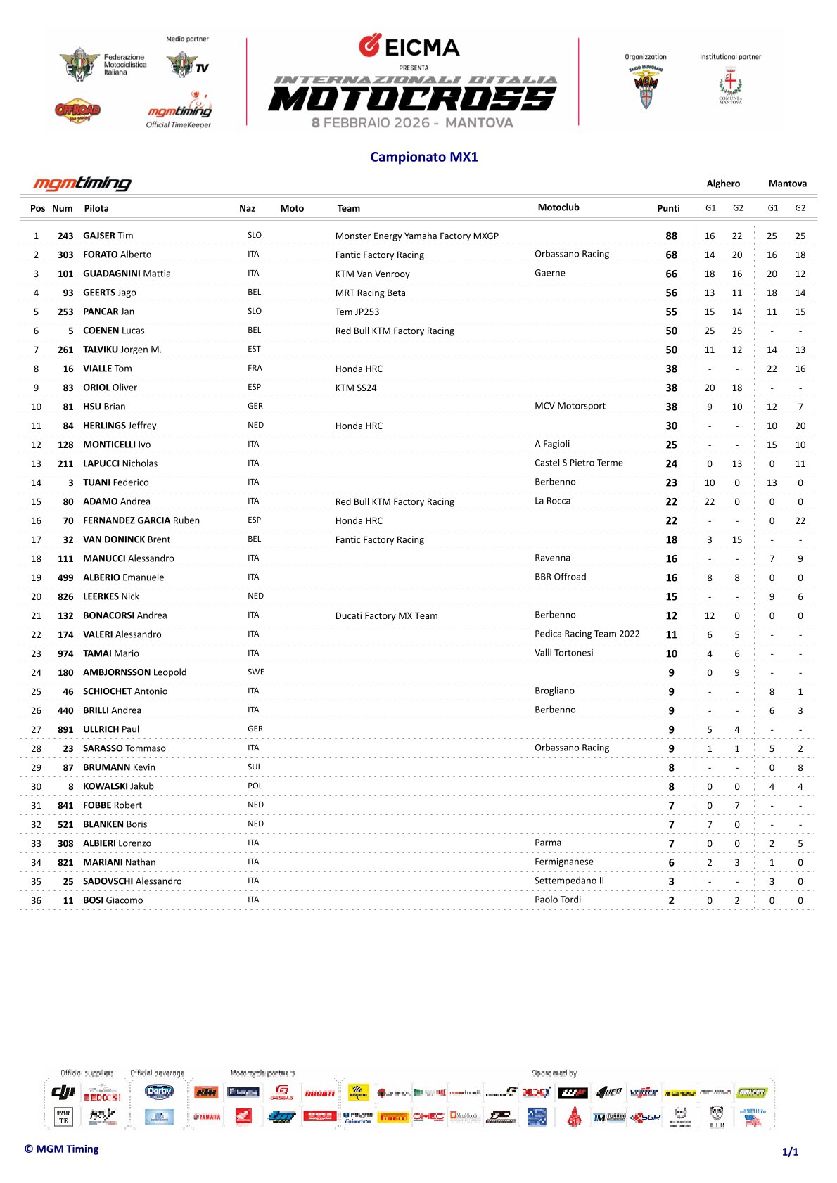 Gajser wins both motos in Mantova, Herlings third