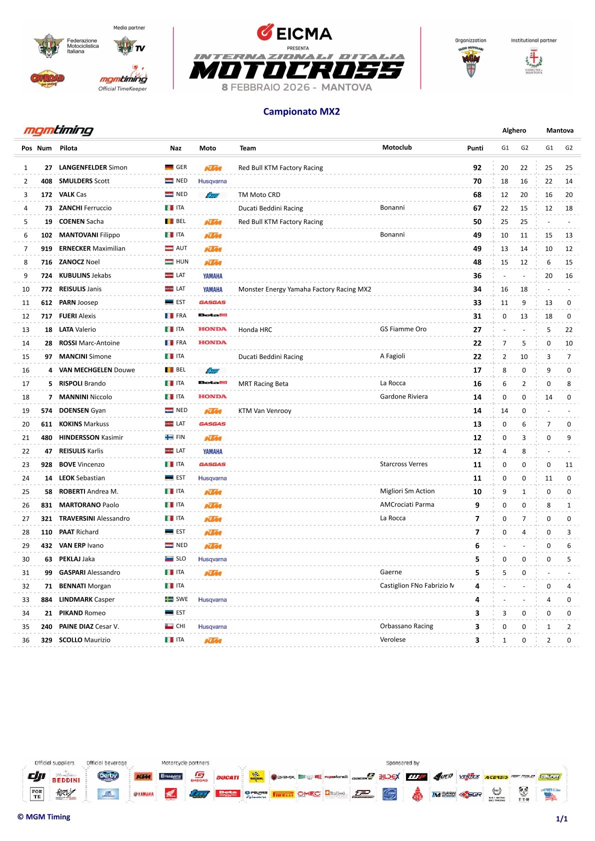 Simon Laengenfelder has secured the Italian title in the MX2 class. During the second round in Mantova today, Laengenfelder won both motos to clinch the championship.