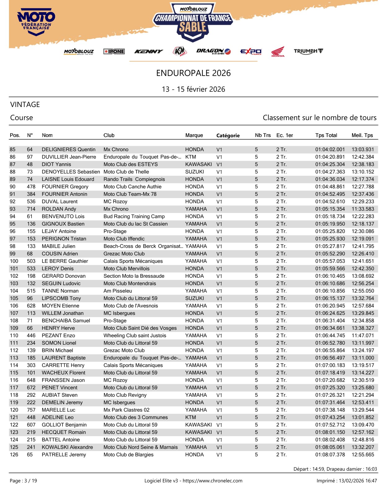 Florian Miot won the vintage class at the Le Touquet beach race in France. In the one-hour race, the gap to Adrien van Beveren was just 6.9 seconds. Damien Prevot finished third, ahead of Paul Le Gonidec and Romain Demontier.