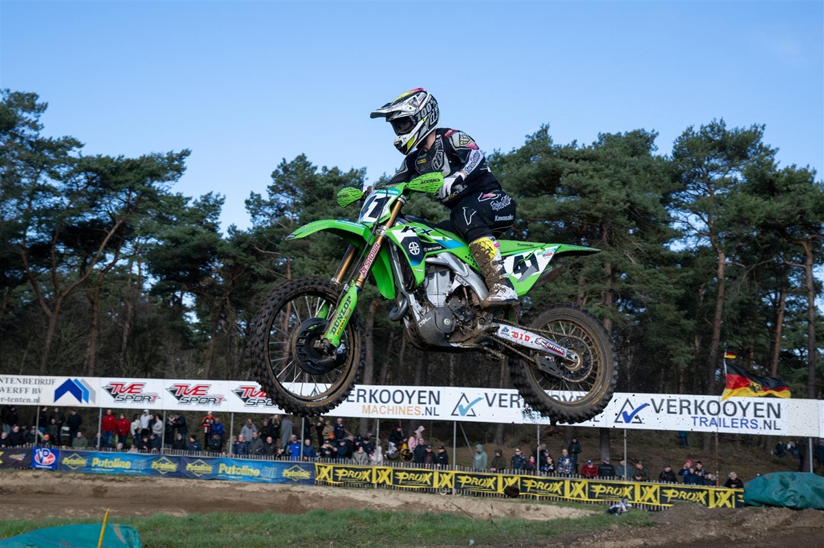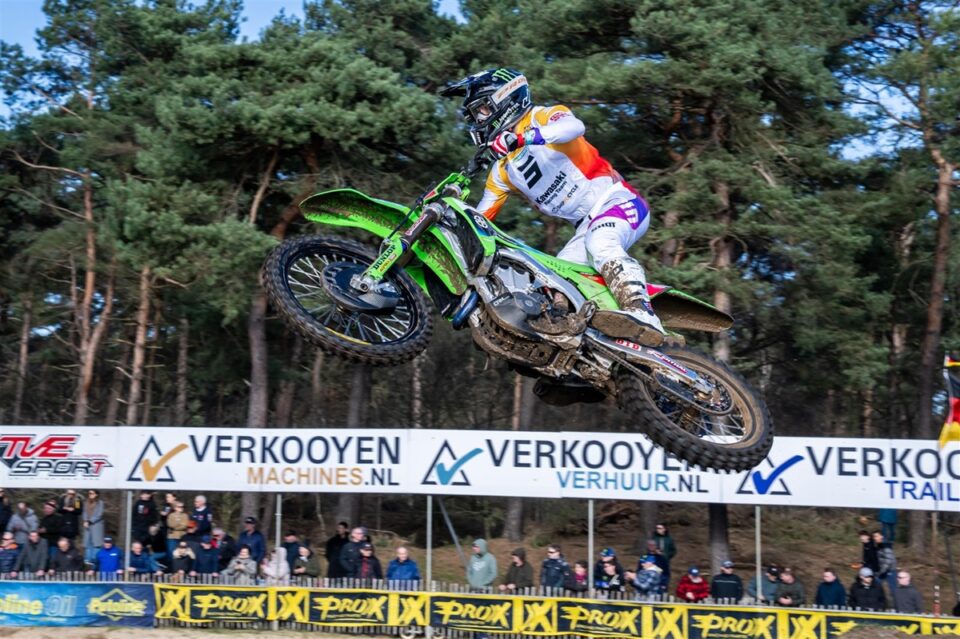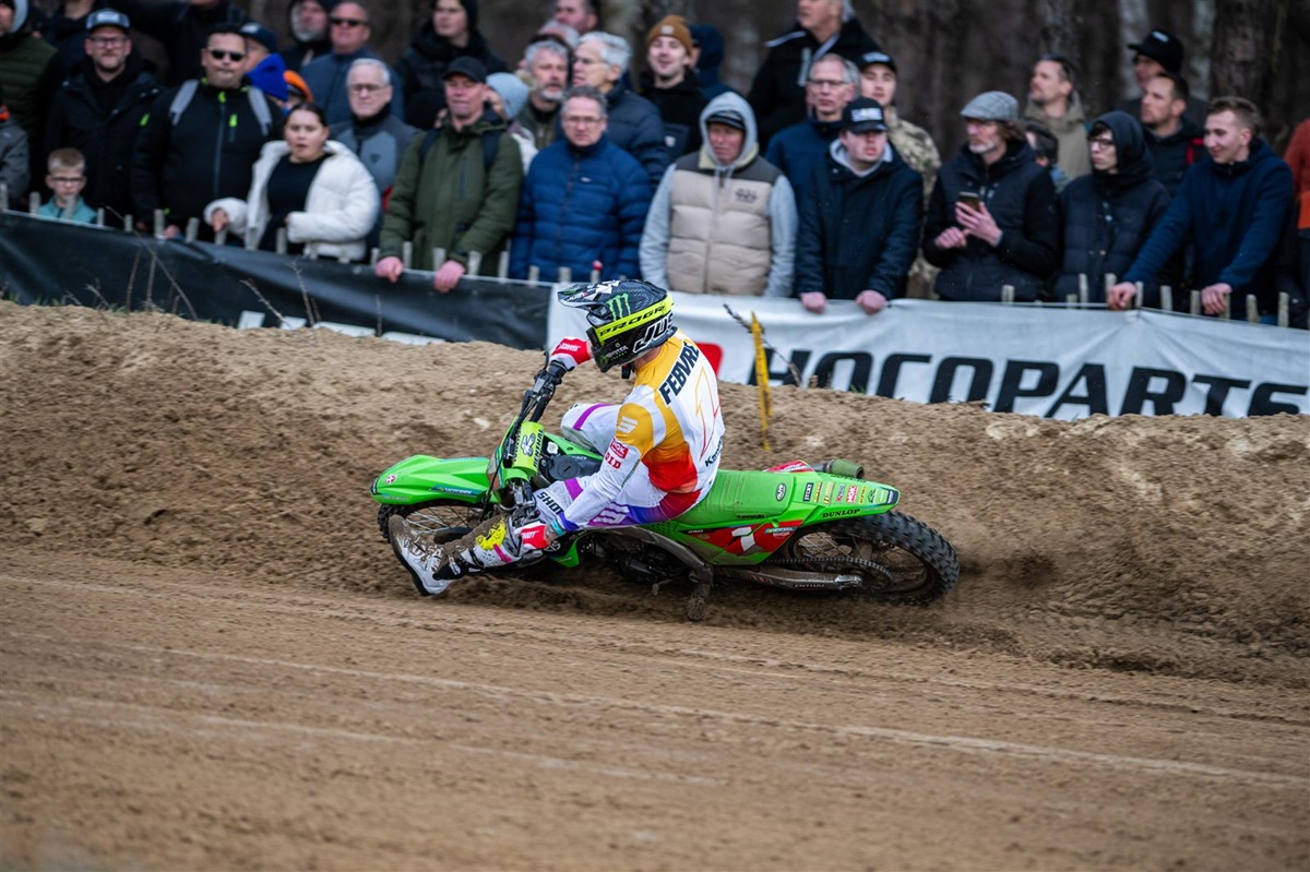 Kawasaki Racing Team MXGP’s Romain Febvre completed his preparation for the defence of the FIM MXGP World Championship title by sharing the top-two placings in both motos of the Dutch international at the rugged Lierop sand track with a fellow multiple world champion