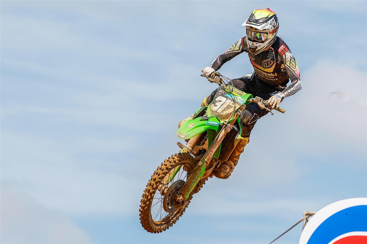 DRT Kawasaki’s Kay Karssemakers continues to establish himself as the leading rider in the series without full factory support. The Dutch youngster used his well-earnt gate-pick from Qualifying to finish the first thirty-four minute moto within sight of several factory bikes in tenth and, his confidence boosted yet further, he made early passes through the first few turns of moto two to run eighth, with fifth in his sights, for half of race to eventually finish a lonely ninth for tenth overall. He is now thirteenth in the series standings.