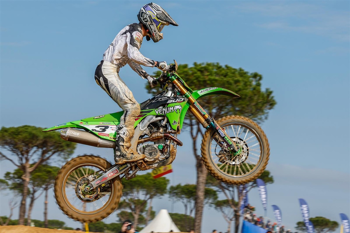 Venum Bud Racing Kawasaki’s Francisco Garcia rode a cool mature race from outside the top-ten in the second moto of the weekend at Frauenfeld in Switzerland to maintain his unbeaten record and extend his series lead to twenty-seven points in this year’s FIM European EMX250 Motocross Championship. Bud teammate Jake Cannon was again on the podium over the weekend and Kawasaki now lead the Manufacturers’ standings by twenty-eight points.
