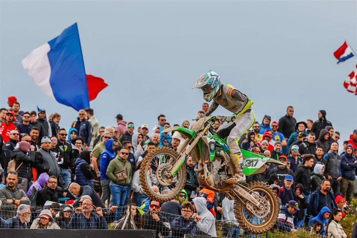 Kawasaki Racing Team MX2’s Mathis Valin stormed though the pack from fifteenth to sixth in the second moto at round four of the FIM World MX2 Motocross Championship at Riola Sardo on Sardinia.