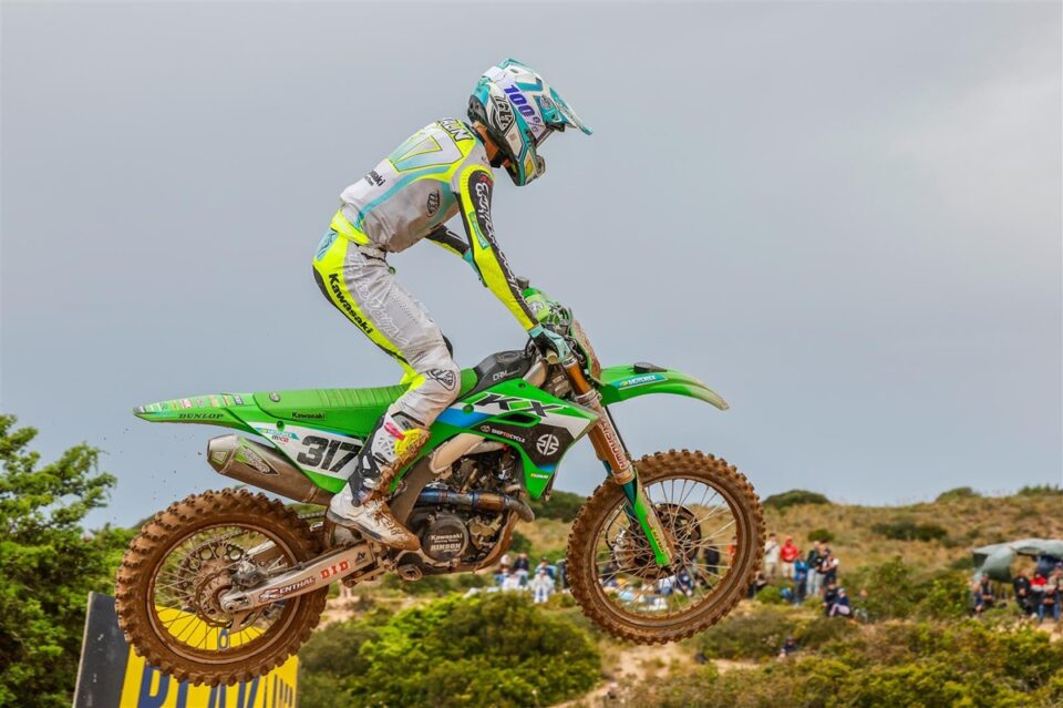 Kawasaki Racing Team MX2’s Mathis Valin stormed though the pack from fifteenth to sixth in the second moto at round four of the FIM World MX2 Motocross Championship at Riola Sardo on Sardinia.