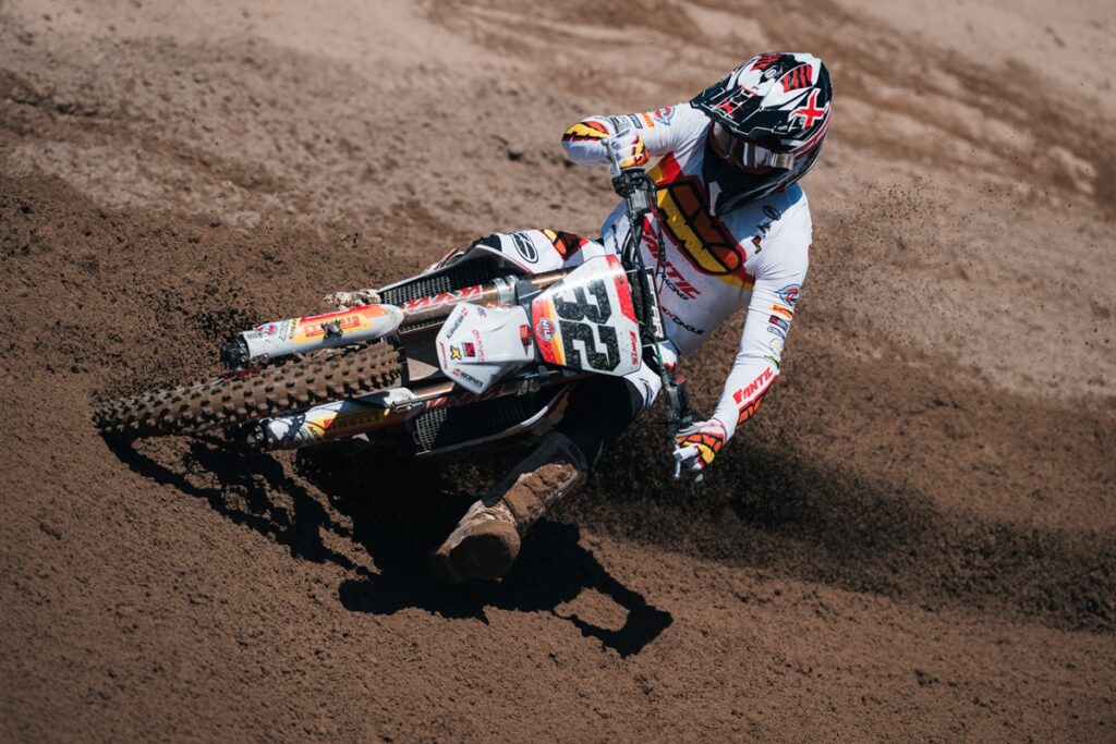 Van doninck was hoping to do the same after an encouraging Saturday, but he went down at the start of race 1. Forced to chase the field, the Belgian managed to break into the points in 19th. In race 2, he was fast out of the gate aboard the Fantic XXF 450 but lost ground in a tight first turn, finding himself mid-pack. He charged to P12 to finish off the weekend on a positive note. Despite the bad luck in the opening race, he placed 16th overall.