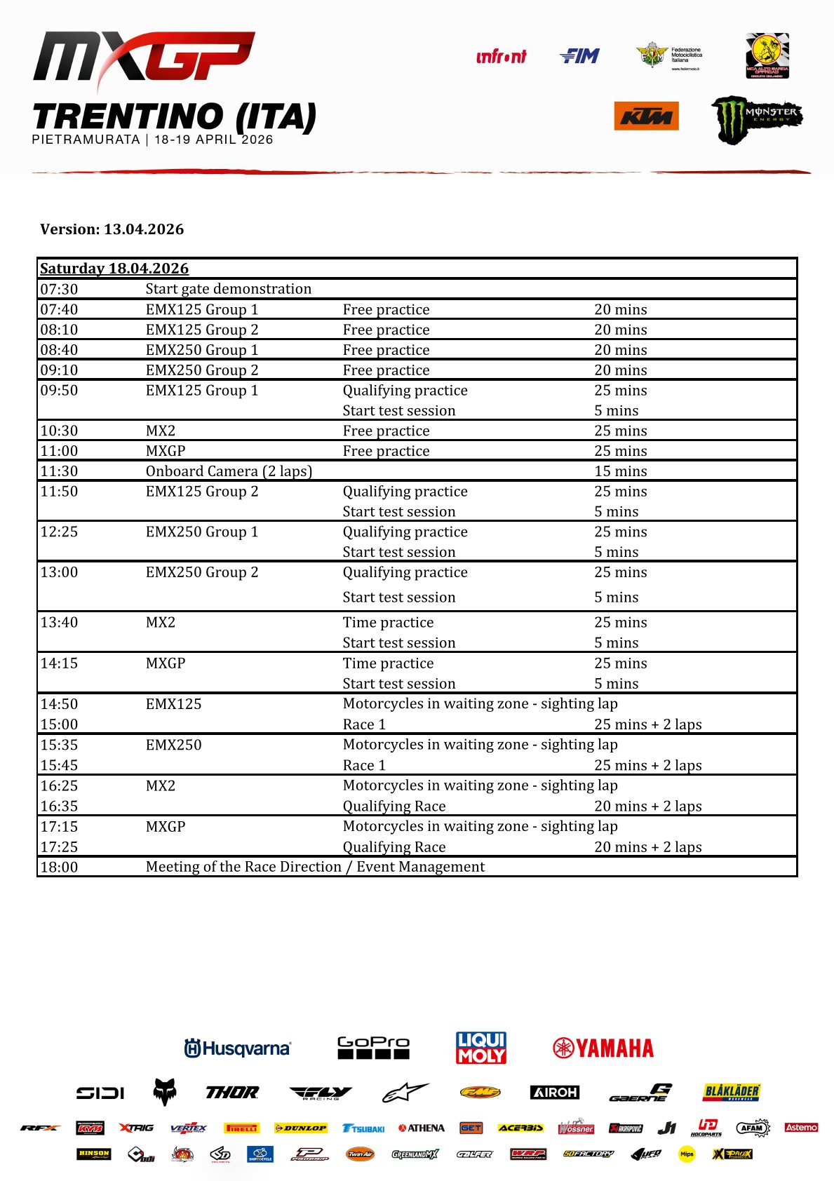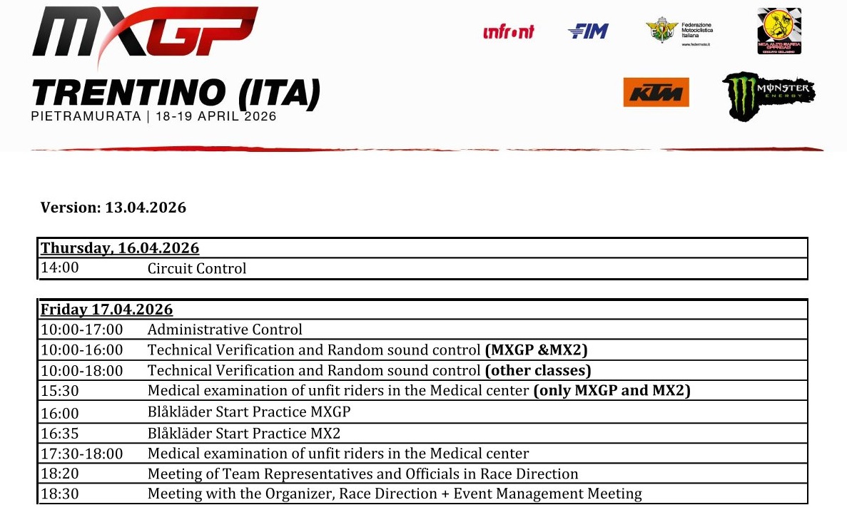 The 5th round of the 2026 FIM Motocross World Championship arrives Pietramurata for the MXGP of Trentino om the 18th and 19th of April.