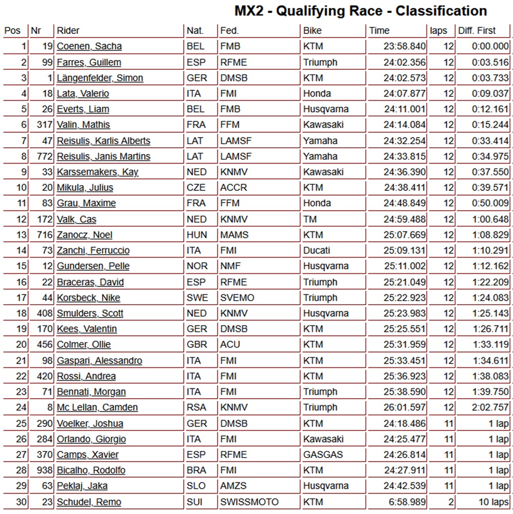 Sacha Coenen won the MX2 qualifying race. As so often, the Belgian grabbed the holeshot and never gave up the lead.