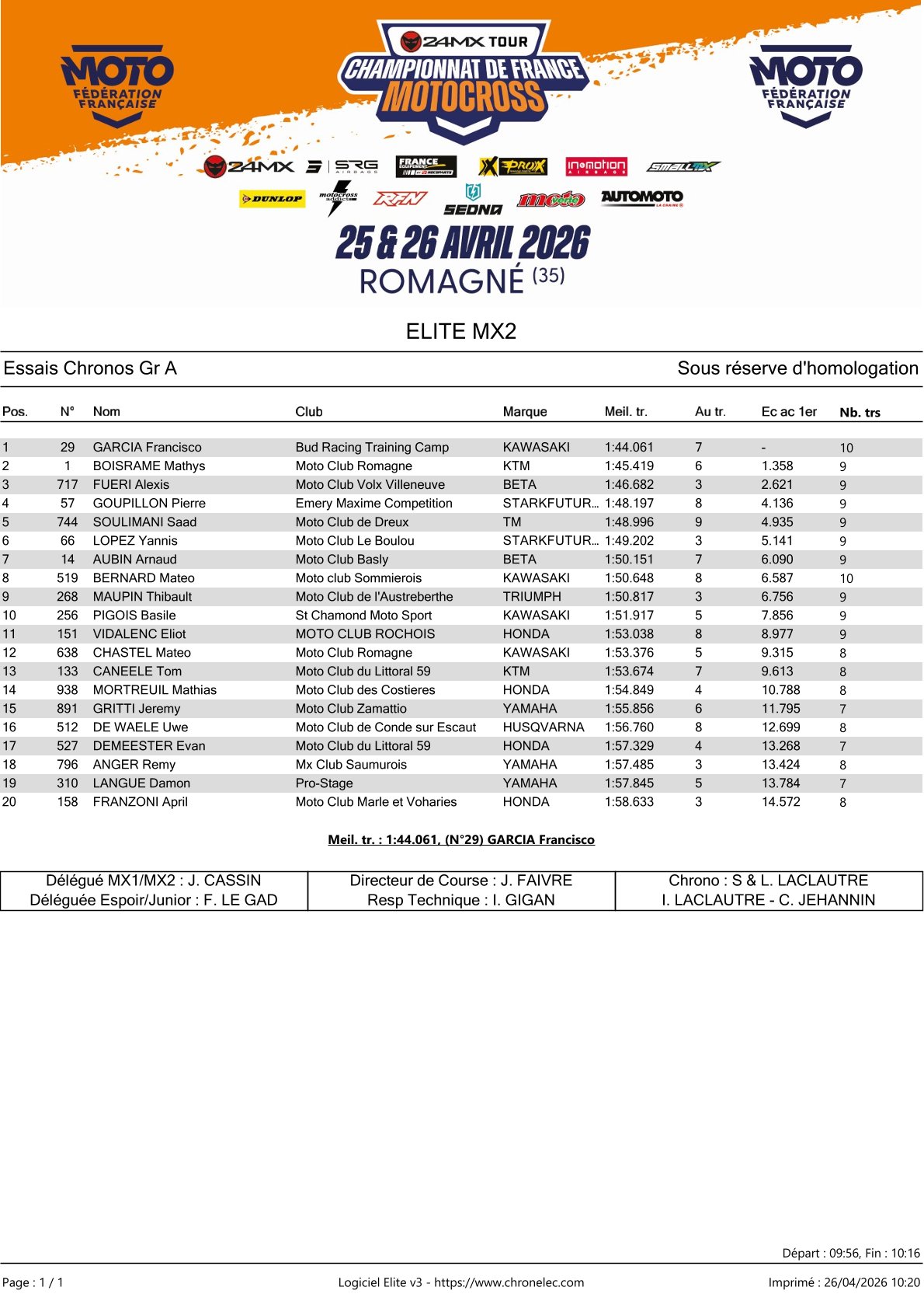 In the MX2 class, the fastest time was set by Francisco Garcia.