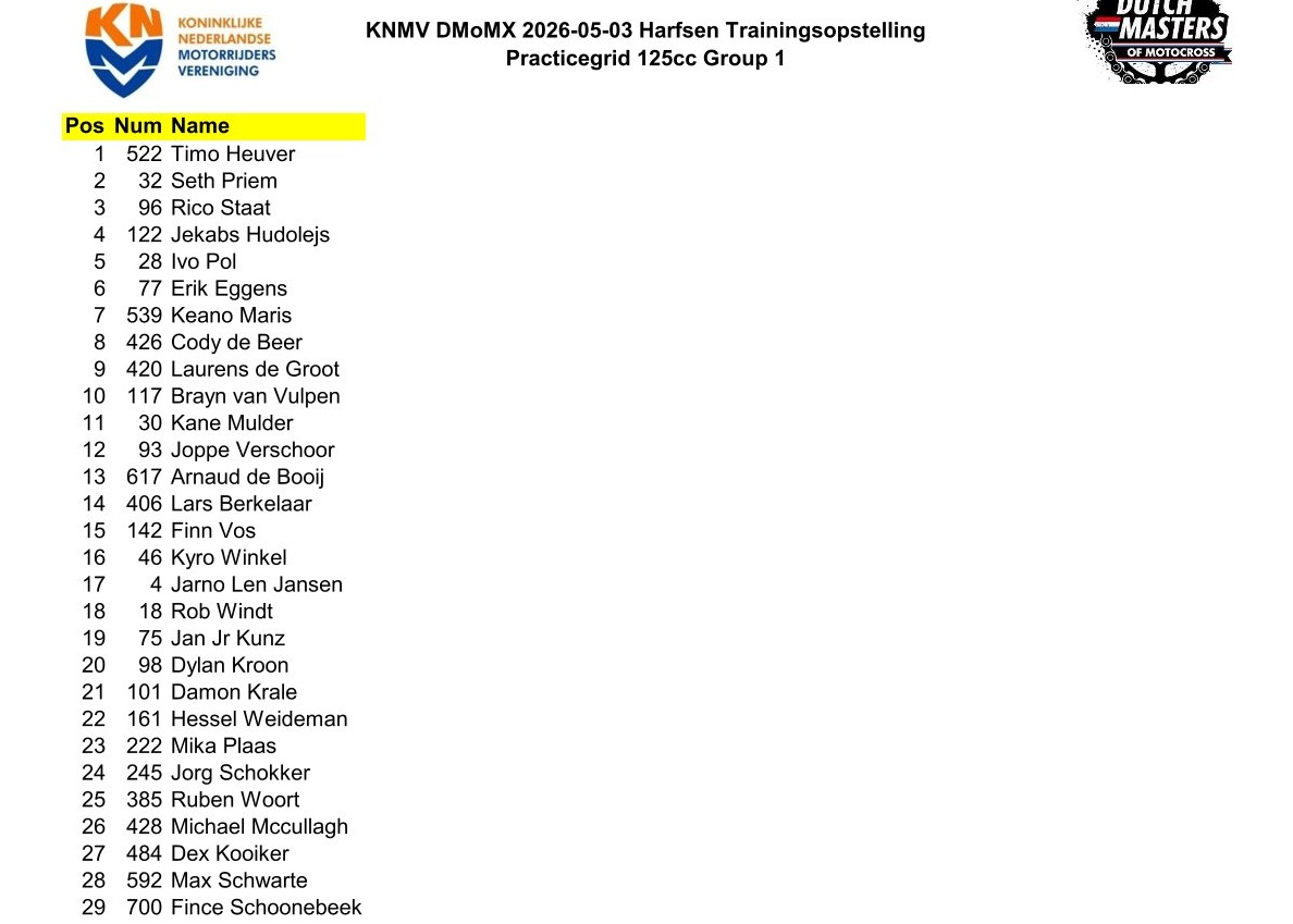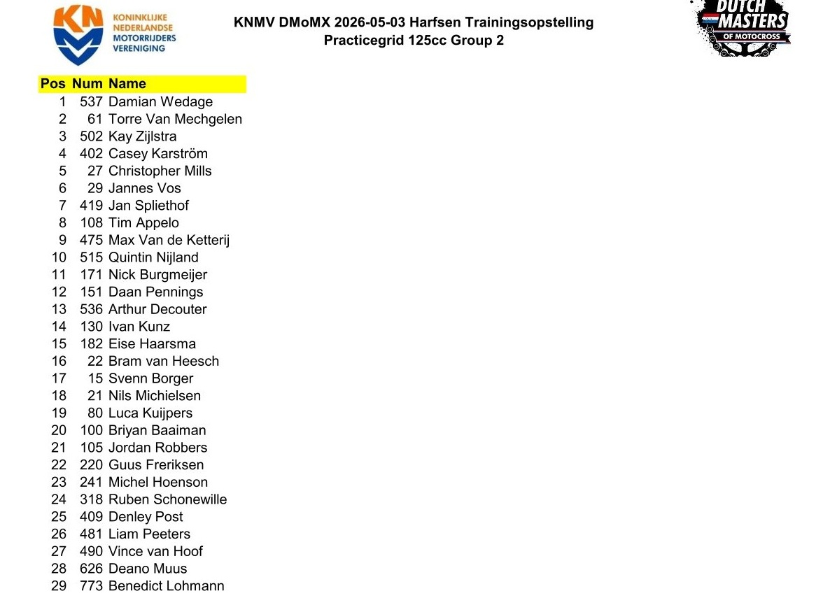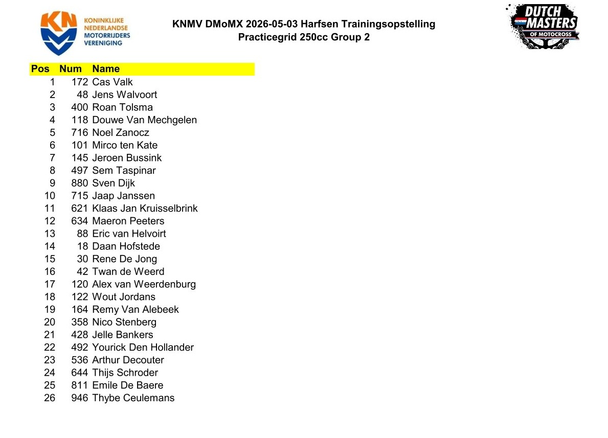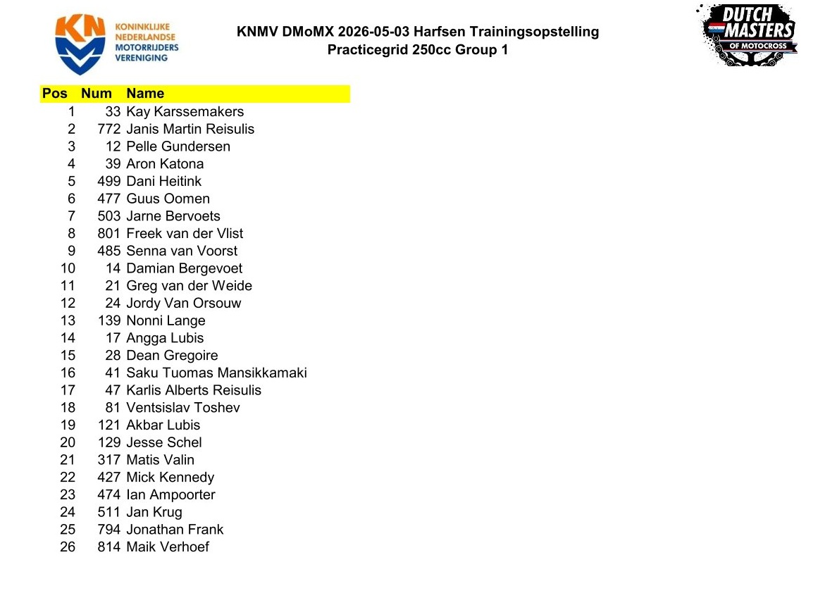 Dutch Masters Harfsen – Entry Lists and Schedule April 30, 2026April 30, 2026 This coming Sunday, the second race of the Dutch Masters of Motocross will take place in Harfsen. You can see who will be at the starting line in the participant lists below. Photocredits – Full Spectrum Media